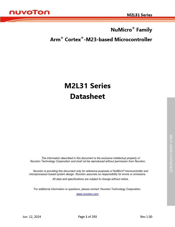 For additional information or questions, please contact: Nuvoton Technology Corporation. .nuvoton.