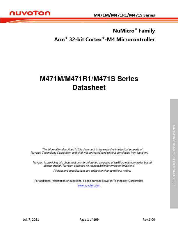 The NuMicro® M471M/M471R1/M471S series is a 32-bit microcontroller based on Arm® Cortex® -M4F core, with DSP instruction set and single-precision floating-point unit (FPU), targeted for smart home appliance applications. For the growing requirement of the safety functions on the home appliance, the M471M/M471R1/M471S series provides certified Software Test Library (STL) and an application note for IEC60730-1 Class B...