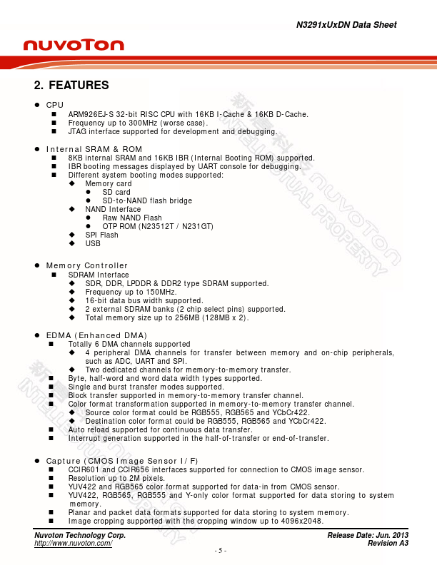 The N3291xUxDN is specially designed for accelerating video stream decoding performance while off-loading the CPU to save power consumption. It is embedded H/W video decoder to deliver high-quality video playback in different formats, like H.264 / MPEG-4 / H.263. The N3291xUxDN is built on the ARM926EJ-S CPU core and integrated with video encoder, JPEG codec, CMOS image sensor interface, Sound Processing Unit (SPU),...