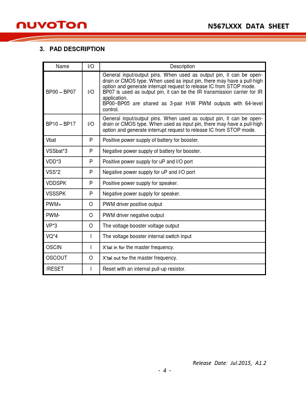 - Build in internal booster to pump VP as 3.3V or 4.2V (by mask option)