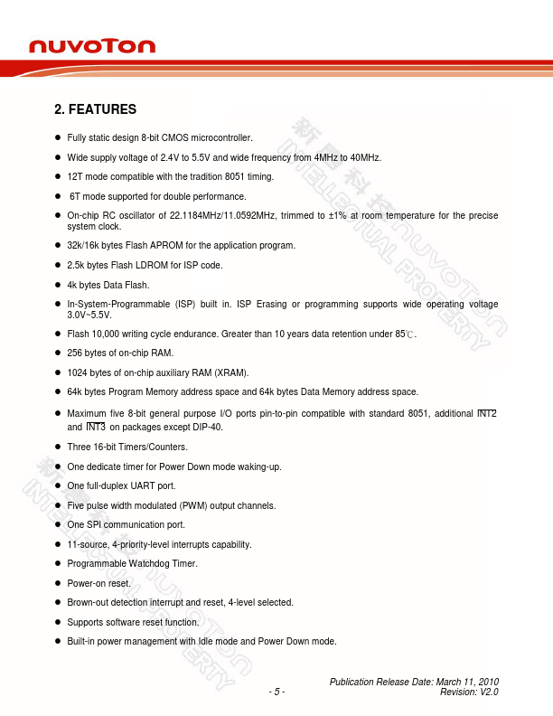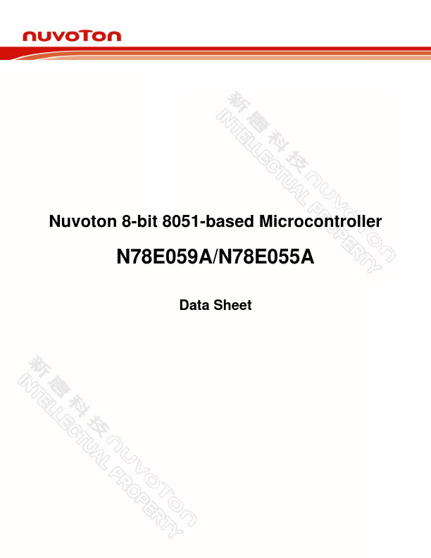 N78E059A/N78E055A is an 8-bit microcontroller, which has an in-system programmable Flash supported. The instruction set of N78E059A/N78E055A is fully patible with the standard 8051. N78E059A/N78E055A contains 32k/16k bytes of main Flash APROM, in which the contents of the main program code can be updated by parallel Programmer/Writer or In System Programming (ISP) method which enables on-chip firmware updating.