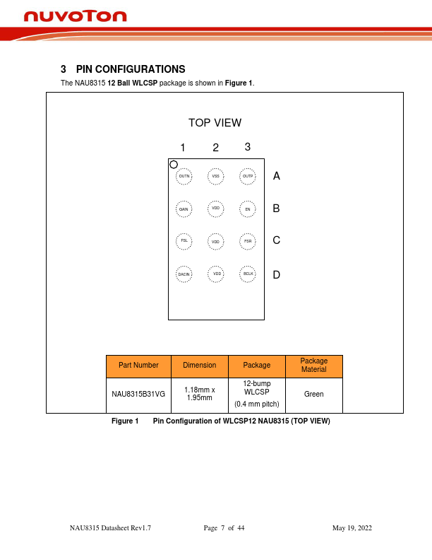 The NAU8315 is a mono high efficiency filter-free Class-D audio amplifier, which is capable of driving a 4Ω load with up to 3.2W output power. This device provides Enable control and I2S audio input with low standby current and fast start-up time. The NAU8315 is ideal for the portable applications, as it has advanced.