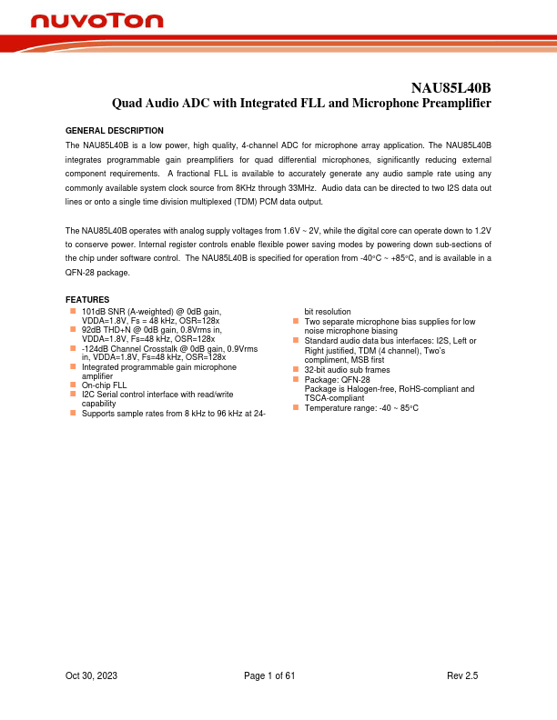 NAU85L40B Key Features