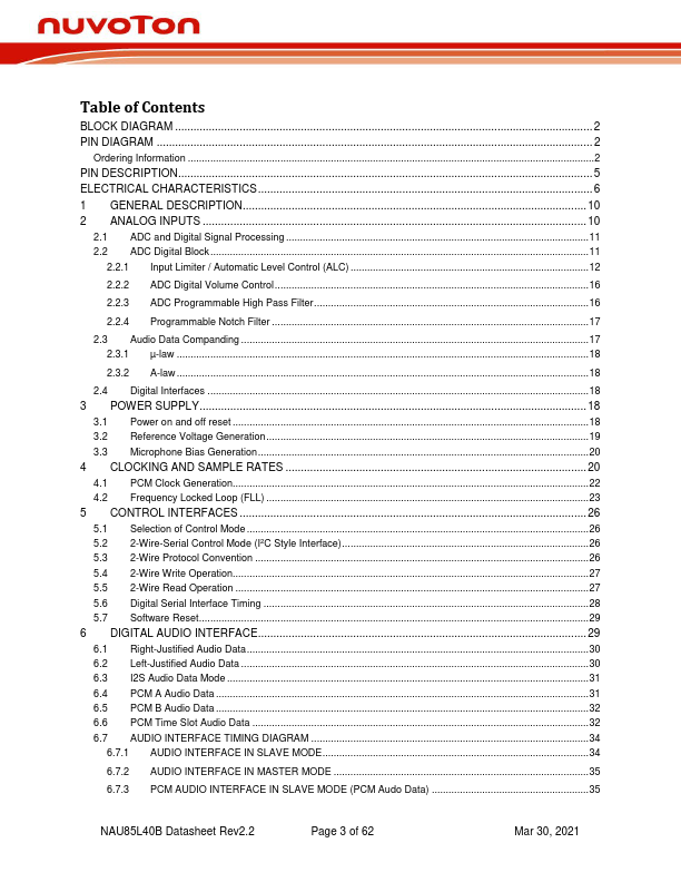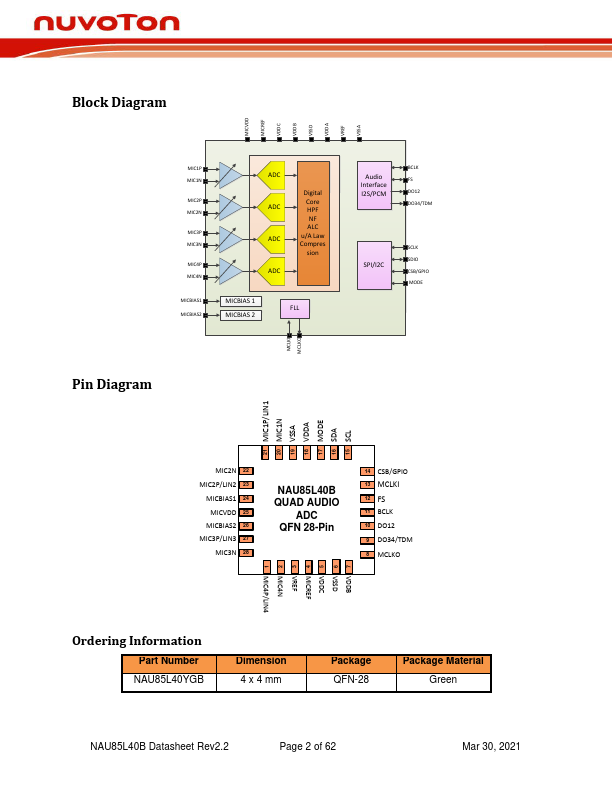 The NAU85L40B is a low power, high quality, 4-channel ADC for microphone array application.