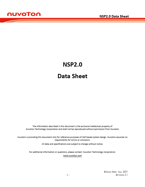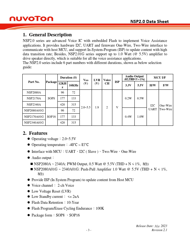 - NSP2080A ~ 2340A: PWM Output, 0.5 Watt @ 5.5V (THD + N < 1%, 8)