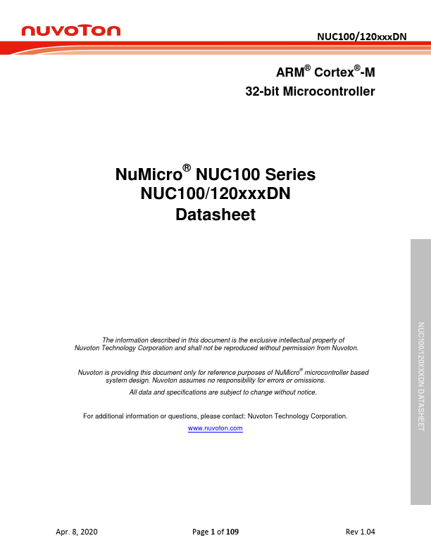 The NuMicro® NUC100 series 32-bit microcontroller (MCU) is embedded with the ARM® Cortex® M0 core with the cost equivalent to traditional 8-bit MCU. The NUC100 series can be used in consumer electronics, industrial control and applications which requiring rich munication interfaces such as industrial automation, alarm system, energy system and power system. The NuMicro® NUC100 Advanced Line and NUC120 USB Line are...