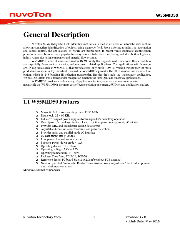 Nuvoton MFID (Magnetic Field Identification) series is used in all areas of automatic data capture allowing contactless identification of objects using magnetic field. From ticketing to industrial automation and access control, the applications of MFID are burgeoning. In recent years automatic identification procedures have bee very popular in many service industries, purchasing and distribution logistics, industry,...