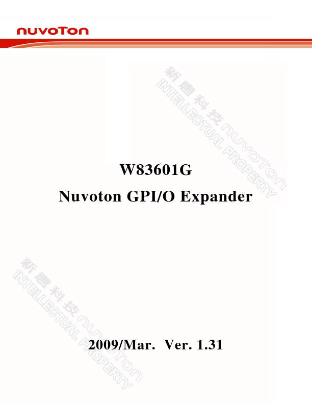 The W83601G are general purpose input/output ICs with SMBusTM( I2C ). The W83601G provides 15 GPI/O pins.
