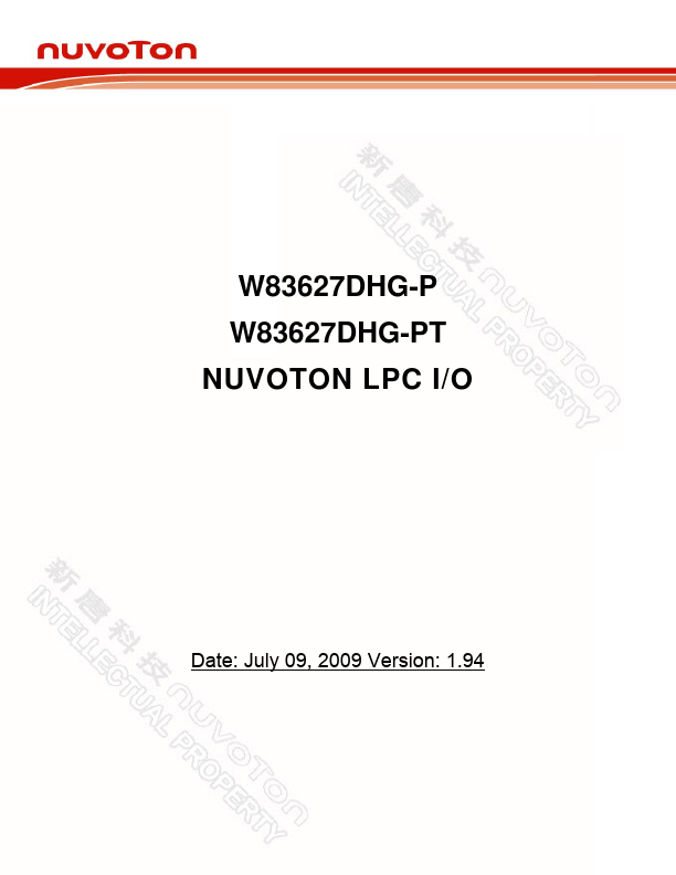 The W83627DHG-P is a member of Nuvoton's Super I/O product line. This family features the LPC (Low Pin Count) interface.