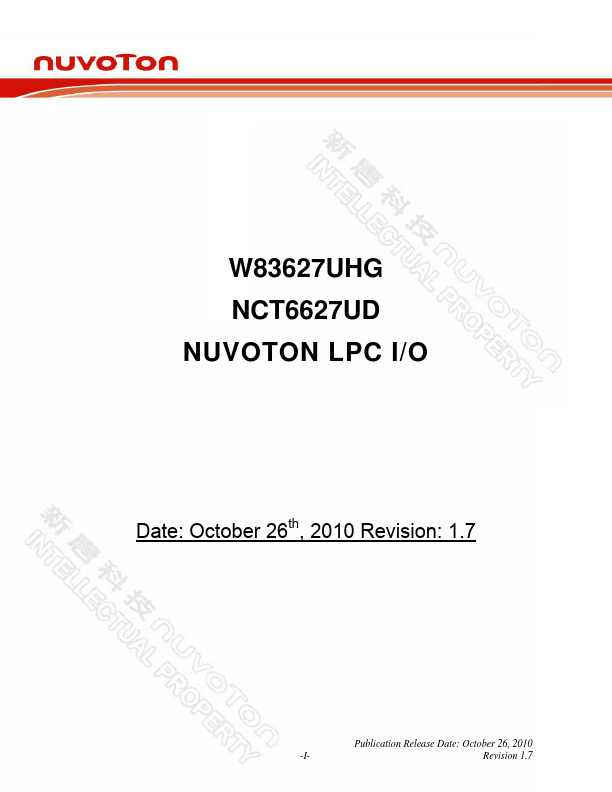 The W83627UHG is a member of Nuvoton’s Super I/O product line. This family features the LPC (Low Pin Count) interface.