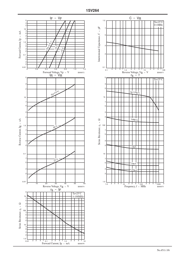 - Series connection of 2 elements in an ultlasmall package facilitates high-density mounting and permits 1SV264-applied eq