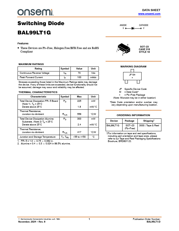 Switching Diode BAL99LT1G ANODE 3 DATA SHEET .onsemi.