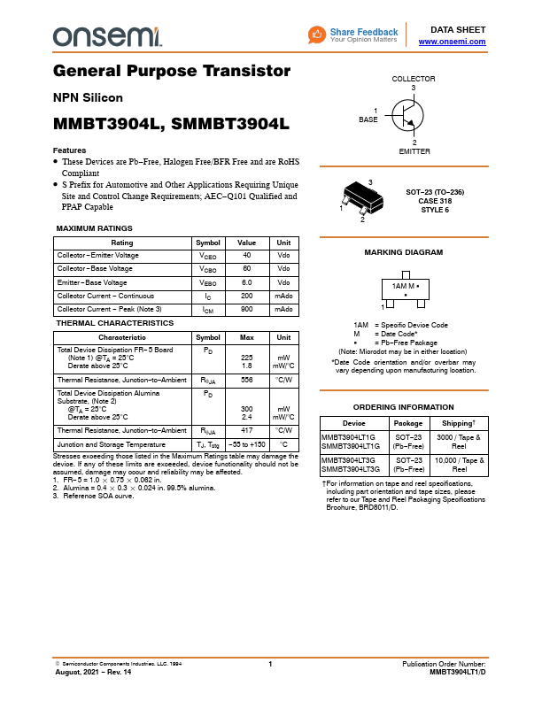 | Datasheet | MMBT3904L-onsemi.pdf |