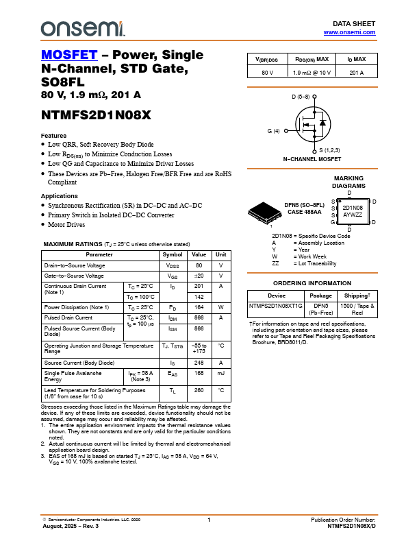 | NTMFS2D5N08X | N-Channel Power MOSFET | ON Semiconductor |