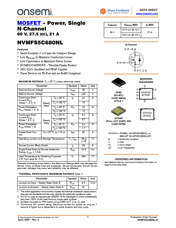 | NVMFS5C682NL | onsemi | N-Channel MOSFET |