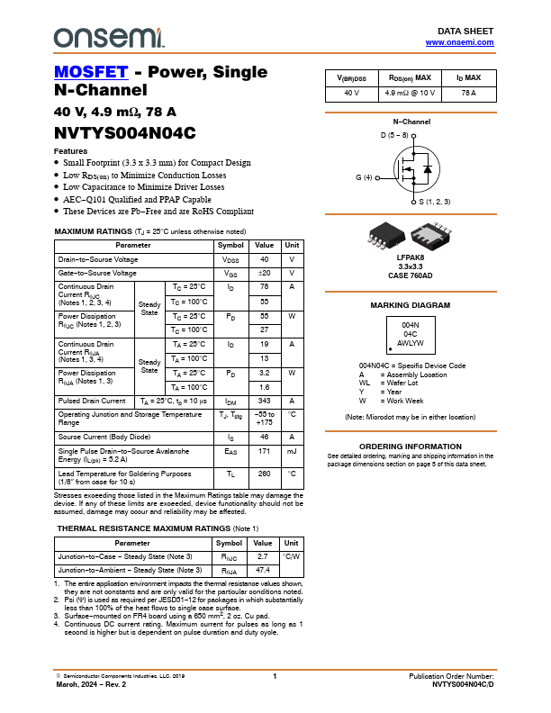 - Small Footprint (3.3 x 3.3 mm) for Compact Design