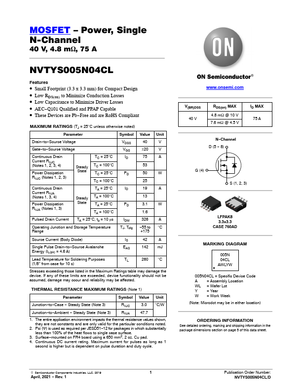 NVTYS005N04CL Overview