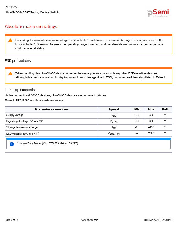 | PE613050 | SP4T Tuning Control Switch | Peregrine Semiconductor |
