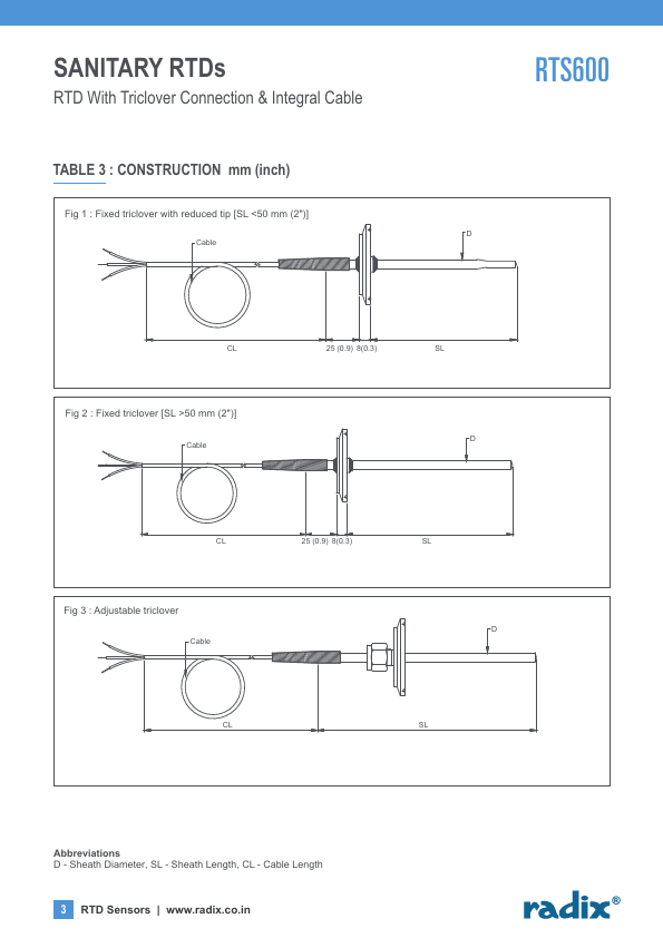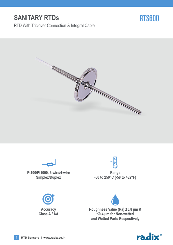 | Description | RTD With Triclover Connection & Integral Cable |