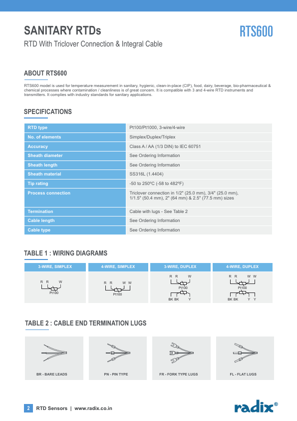 It is patible with 3 and 4-wire RTD instruments and transmitters. It plies with industry standards for sanitary applications. SPECIFICATIONS RTD type No.