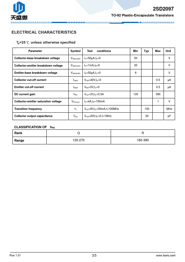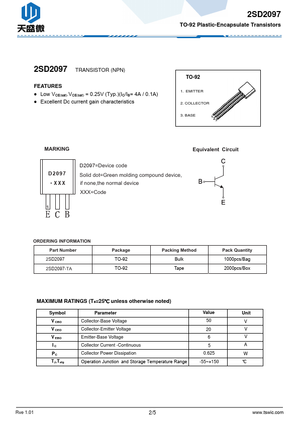 Overview: 2SD2097 TO-92 Plastic-Encapsulate Transistors 2SD2097 TRANSISTOR.