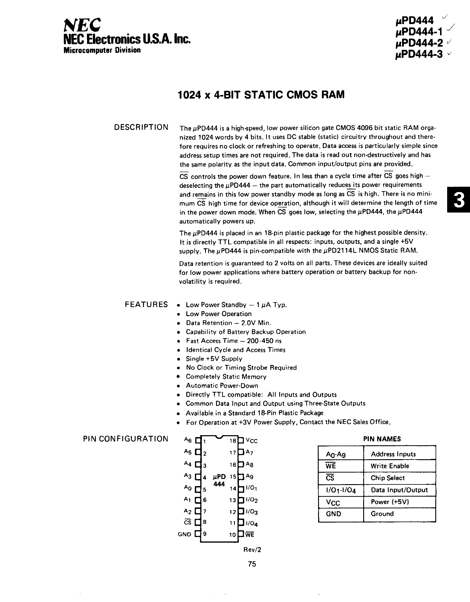 UPD444-2 ram equivalent, 1024 x 4-bit static cmos ram.