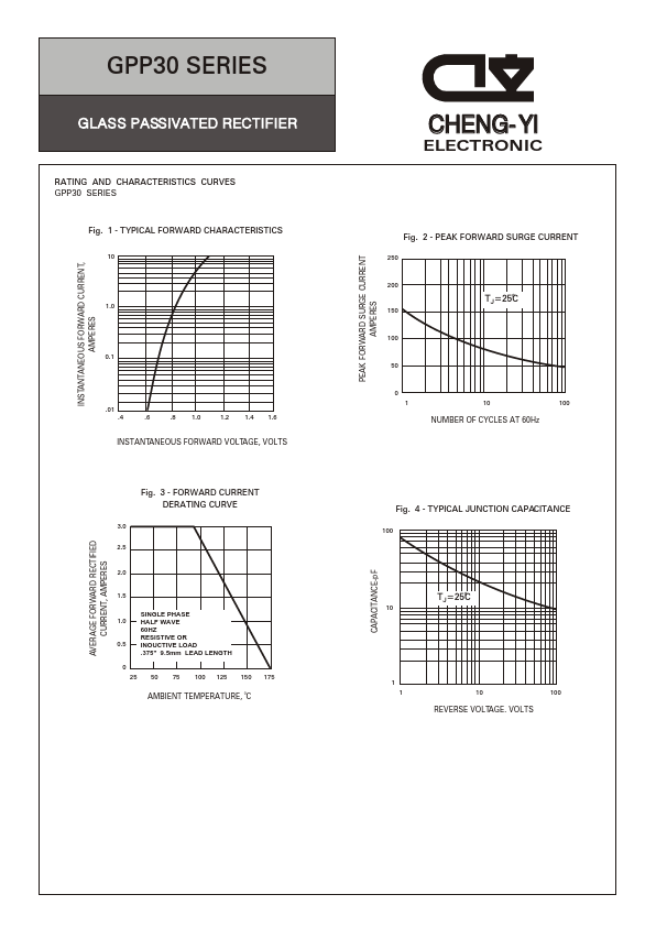 GPP30 SERIES GLASS PASSIVATED RECTIFIER CHENG- YI ELECTRONIC VOLTAGE RANGE 50 TO 1000 Volts CURRENT 3.0 Amperes DO-201AD .GPP30A Distributors
