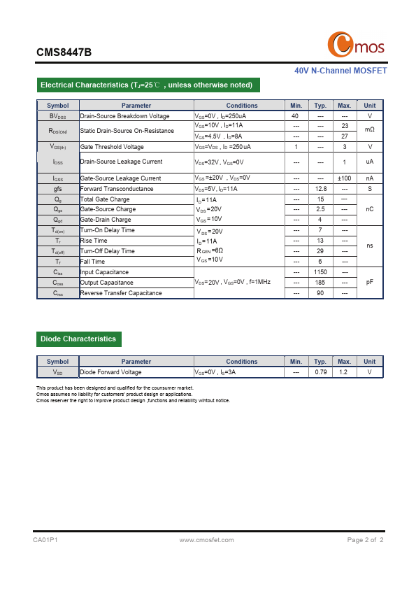 The CMS8447B uses advanced trench technology to provide excellent RDS(ON).