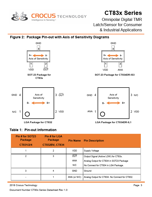 The CT83x Series of integrated omnipolar magnetic latches and analog sensor are designed for consumer and industrial switching applications.