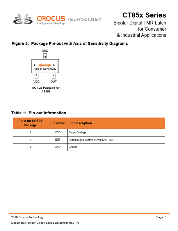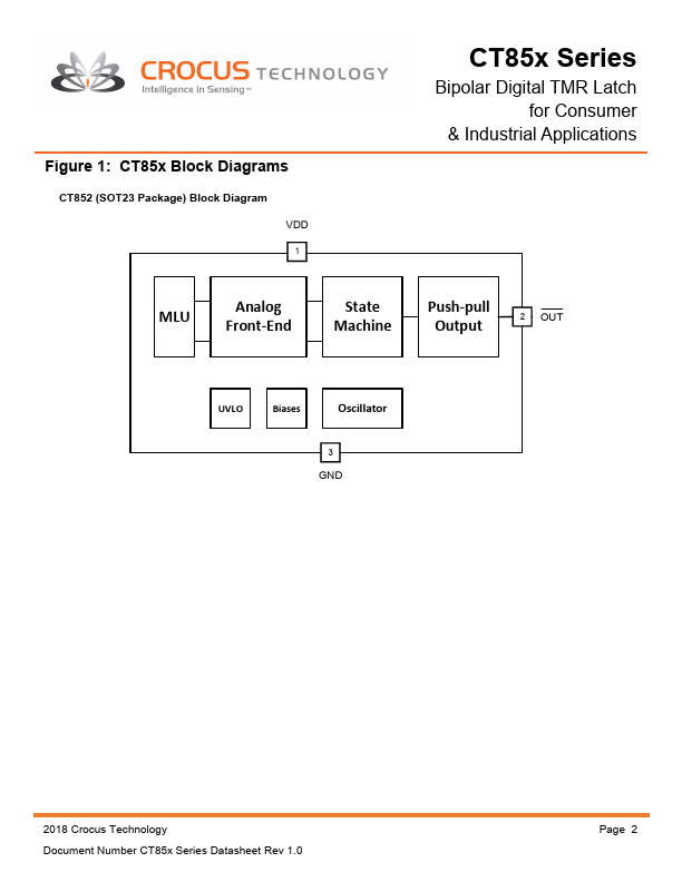 The CT85x Series of integrated bipolar magnetic latches and analog sensor are designed for consumer and industrial switching applications.
