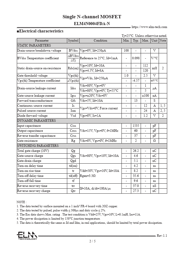 ELM4N0004FDA-N uses advanced trench technology to provide excellent Rds(on), low gate charge and low gate threshold voltage.