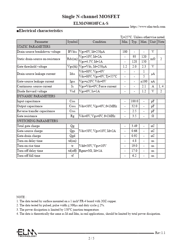 ELM4N0010FCA-S uses advanced trench technology to provide excellent Rds(on), low gate charge and low gate threshold voltage.