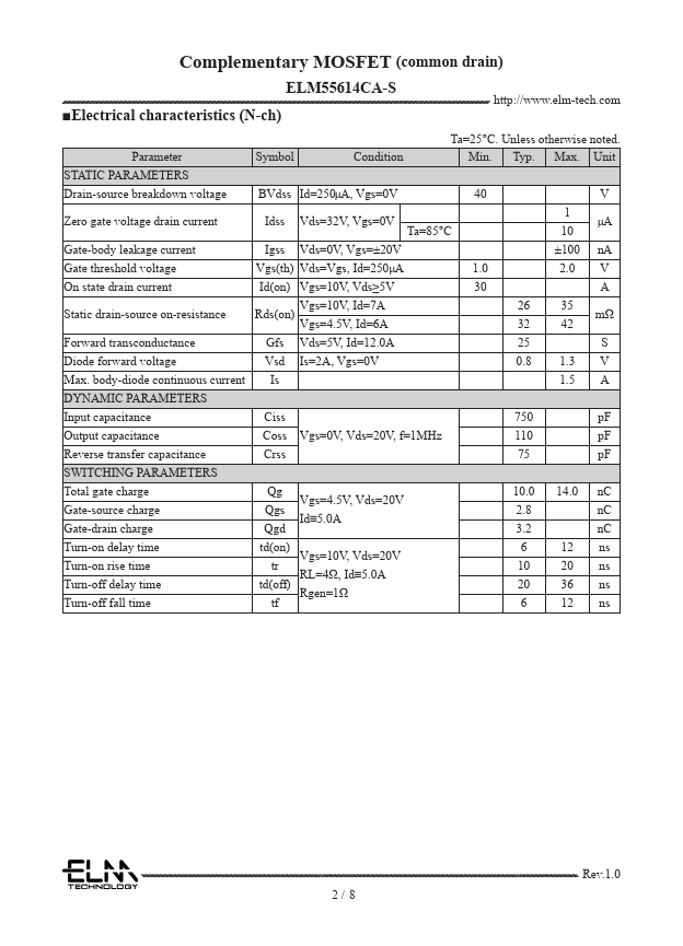ELM55614CA-S uses advanced trench technology to provide excellent Rds(on), low gate charge and low gate threshold voltage.