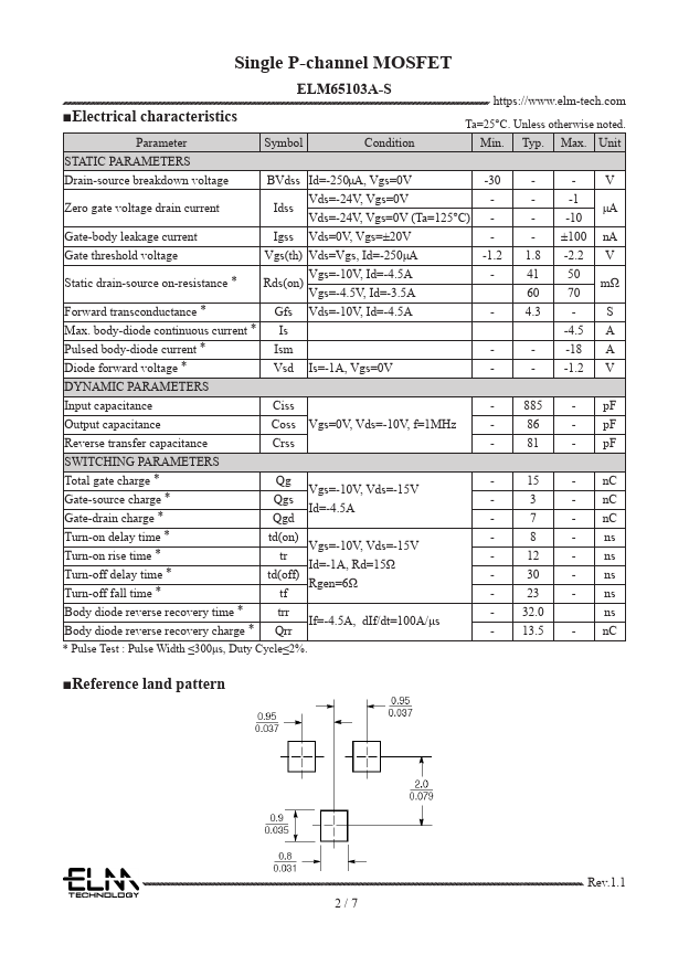 ELM65103A-S uses advanced trench technology to provide excellent Rds(on), low gate charge and low gate threshold voltage.