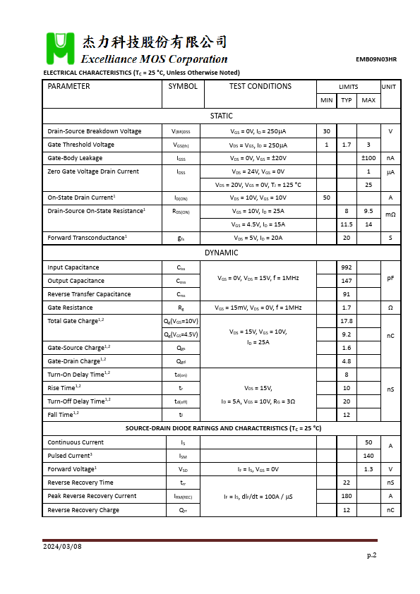 - EMB09P03A  - P-Channel 30V MOSFET (VBsemi)