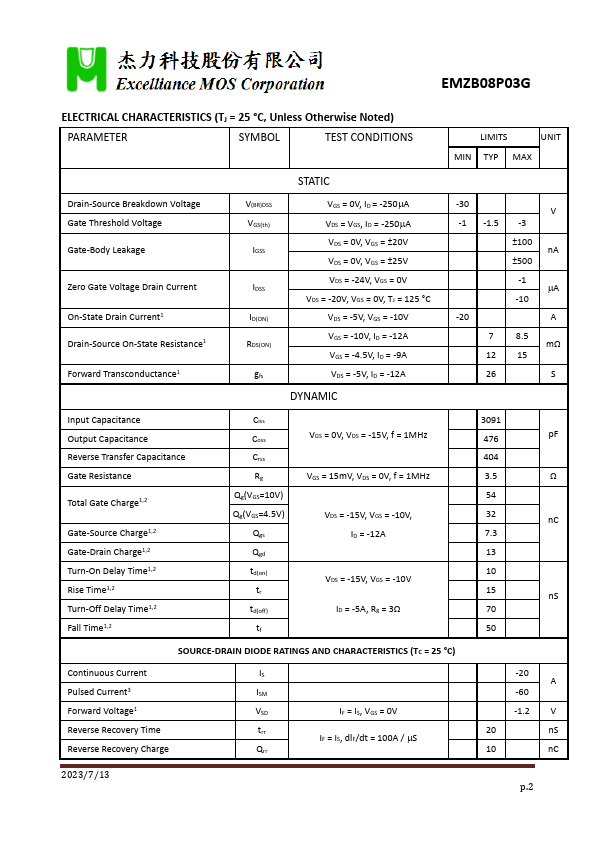 | Description | P-Channel Logic Level Enhancement Mode Field Effect Transistor |