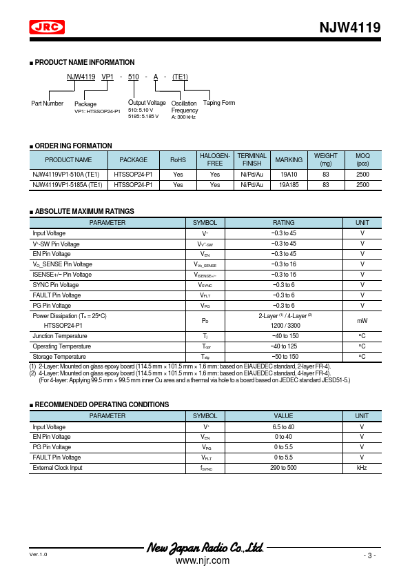 NJW4119 BUCK SWITCHING REGULATOR WITH VOLTAGE CORRECTION CIRCUIT * .