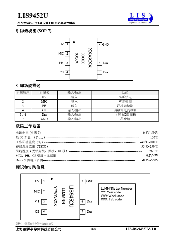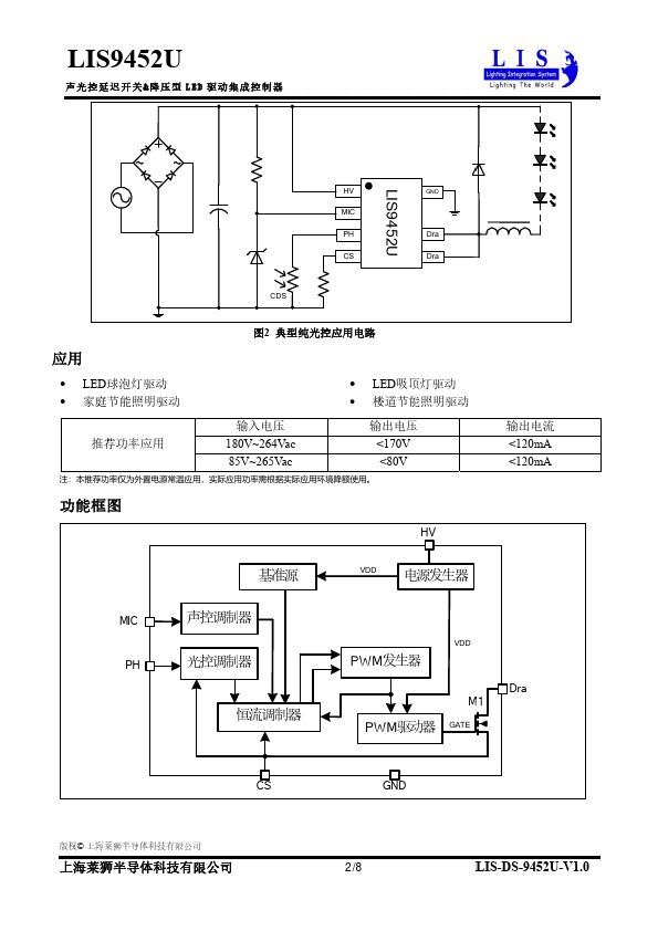 The LIS9452U by LIS is a Audio-visual control delay switch & buck LED driver. Below is the official datasheet preview.