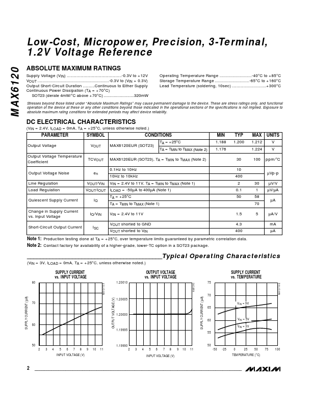 The MAX6120 is the lowest-power 1.2V, precision, three-terminal voltage reference offered in a SOT23 package.