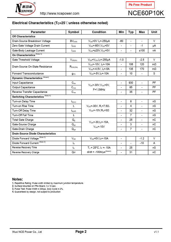 | Part number | NCE60P10K |