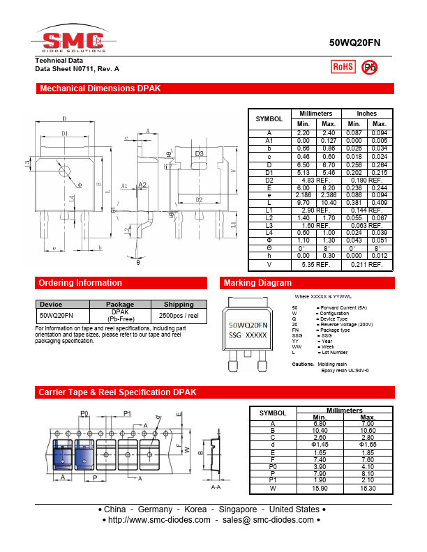 Technical Data Data Sheet N0711, Rev.A 50WQ20FN SCHOTTKY RECTIFIER 50WQ20FN DPAK .50WQ20FN Features