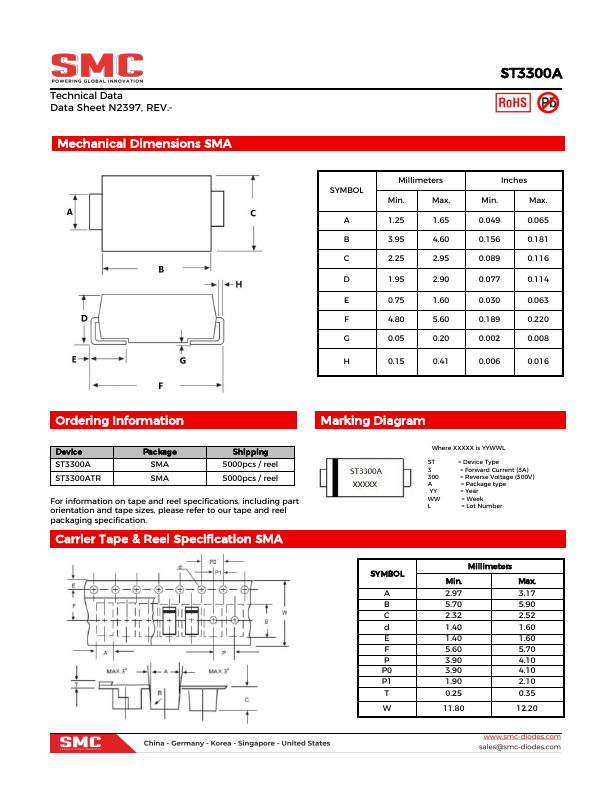 Technical Data Data Sheet N2397, REV.- ST3300A SCHOTTKY RECTIFIER ST3300A SMA .ST3300A Features