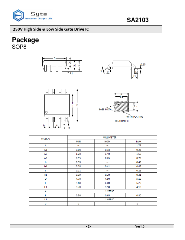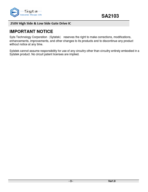 The SA2103 is a high voltage, high speed power MOSFET driver with independent high and low side referenced output channels based on P_SUB P_EPI process.