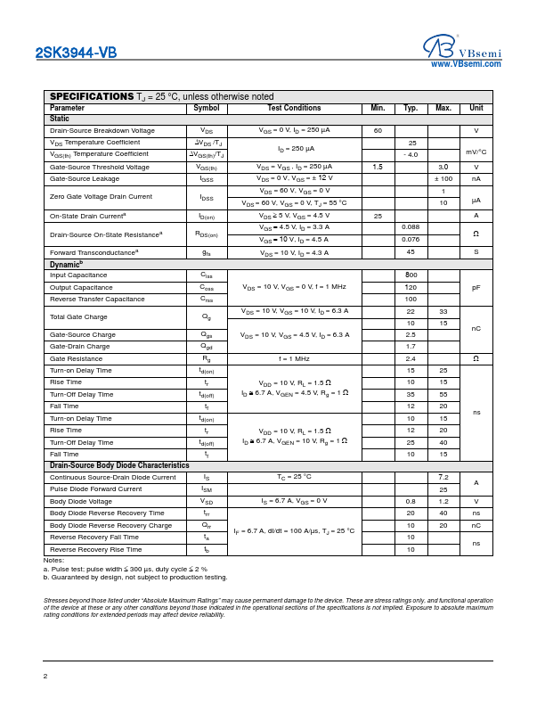 The 2SK3944 by VBsemi is a N-Channel 60V MOSFET. Below is the official datasheet preview.