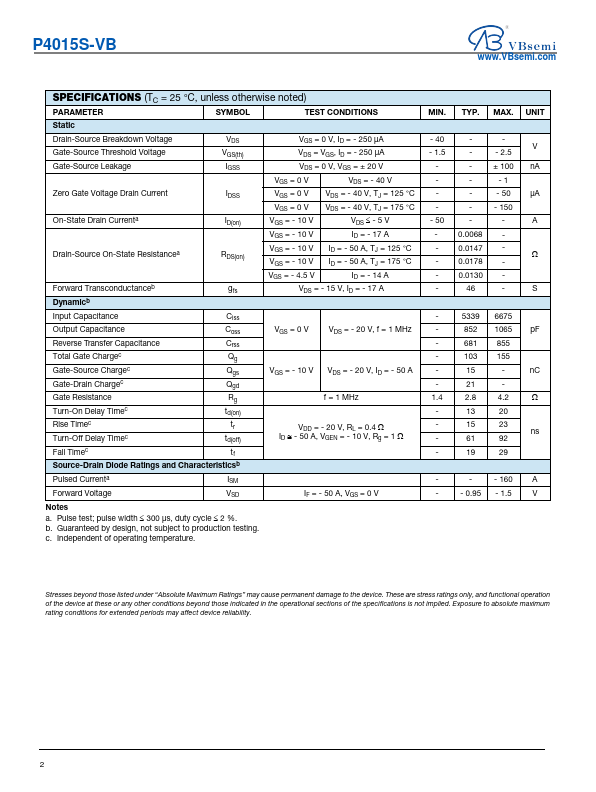 The P4015S by VBsemi is a P-Channel 40V MOSFET. Below is the official datasheet preview.