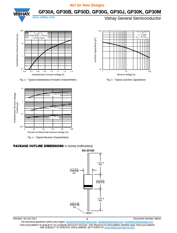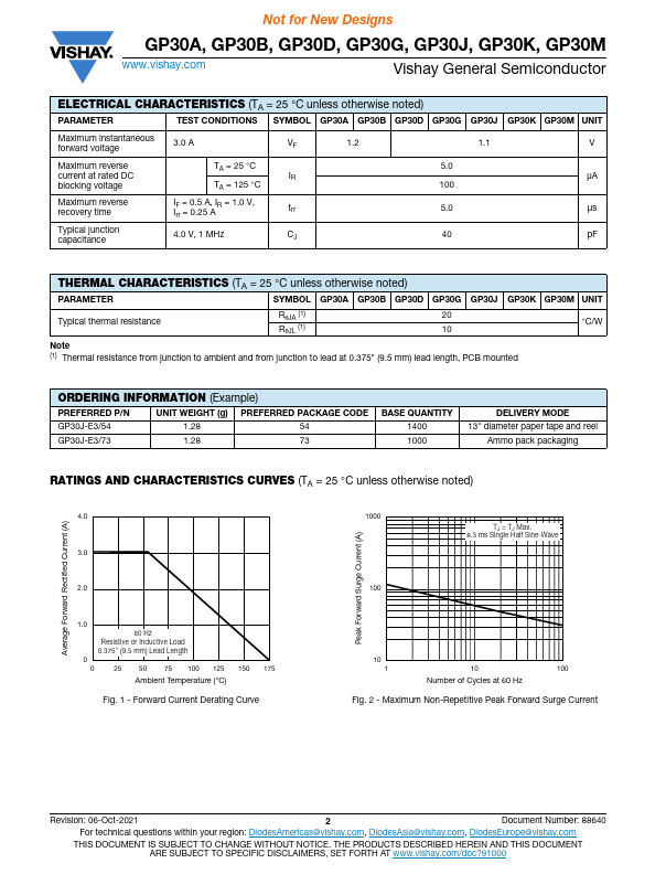 Not for New Designs GP30A, GP30B, GP30D, GP30G, GP30J, GP30K, GP30M www.vishay.com Vishay General Semiconductor Glass Passivated Junction Plastic .
