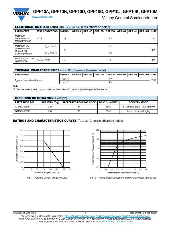 GPP10A, GPP10B, GPP10D, GPP10G, GPP10J, GPP10K, GPP10M www.vishay.com Vishay General Semiconductor Glass Passivated Junction Plastic Rectifier DO-.