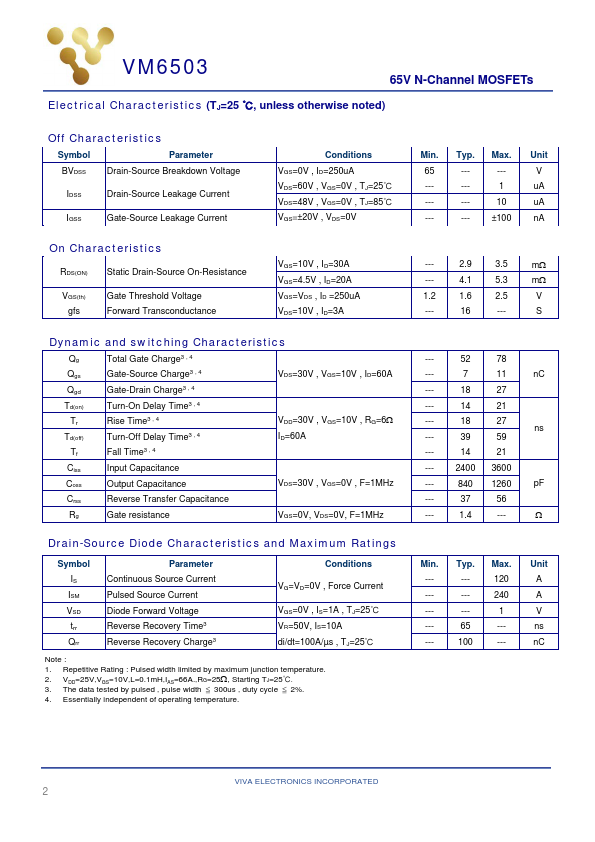 | Description | 65V N-Channel MOSFET |