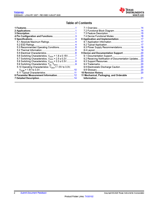| Part number | TXS0102 |