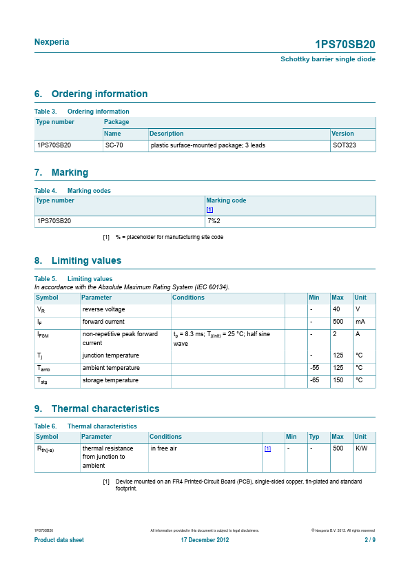 1PS70SB20 Schottky barrier single diode 17 December 2012 Product data sheet 1.General .1PS70SB20 Features